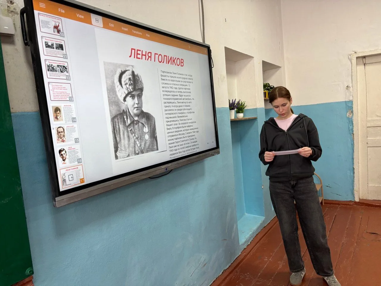 8 февраля, во всём мире отмечается День юного героя-антифашиста. В преддверии этой даты, классный руководитель 11 класса Юлия Александровна Вакуленко, совместно со своим классом, провела с шестиклассниками особенный разговор — о тех, кто в совсем юном возрасте проявил невероятное мужество в борьбе с фашизмом. Представьте: тебе 14 лет, а ты уже разведчик. Тебе 15, а ты ведёшь партизанскую группу в бой. Именно так жили герои, о которых говорили. Ребята слушали о Зине Портновой, отравлявшей пищу в немецкой столовой; о Марате Казее, подорвавшем себя вместе с врагами; о Лёне Голикове, уничтожавшем вражеские машины. Эти имена — не абстракция, а реальные люди с мечтами, страхами и невероятным мужеством. Читая о героях, которые были как они сами, старшеклассники задумались о ценности человеческой жизни, ответственности за будущее и важности сохранения мира. Многие отметили, что истории юных героев заставляют по‑новому взглянуть на понятие «героизм». Мы убеждены: такие разговоры необходимы, чтобы историческая память оставалась живой, а уроки прошлого не были забыты.
