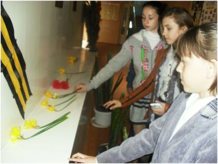 Накануне великой даты учащиеся школы посетили Весело-Вознесенский школьный музей . Ребята совместно с социальным педагогом Казанцевой Ю.А. и психологом Поляковой Ю.В. оформили Стену памяти «Мы помним…». Под руководством учителей начальной школы Коробкиной В.М. и Кацаевой Г.И. учащиеся 1и 3 классов изготовили поделки, рисунки, посвященные героическим страницам истории.. Работы учащихся украсили школьный коридор и участвовали в районных конкурсах. Учитель изобразительного искусства Точеная Н.Л. организовала школьный конкурс рисунков «Спасибо за Победу!». Учитель 2 класса Демидова Е.А. в рамках проектной работы стала инициатором выпуска газет. Ее ученица Балыцкая Виктория при помощи родителей оформила газету «Я горжусь своим прадедом!».